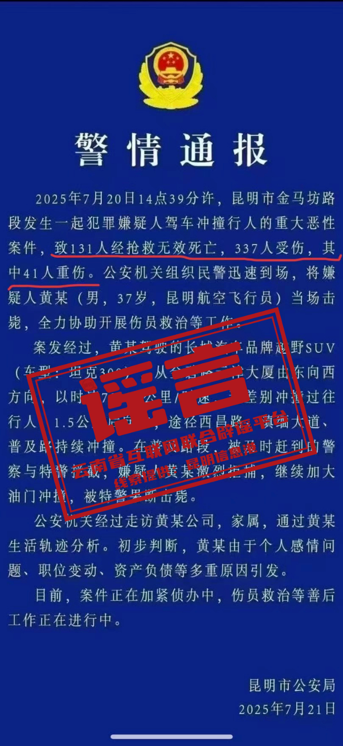 配资公司排名前十 云南昆明犯罪嫌疑人驾车冲撞行人致131死亡?
